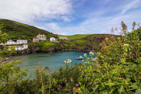 Port Isaac, Cornwall, UK - April 8th 2017: View across the harbour to a large private residence