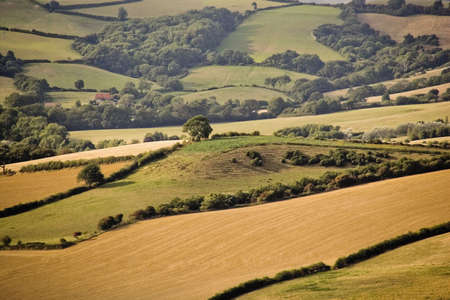 Landscape of evergreen fields and meadows in England, Devon, Europe