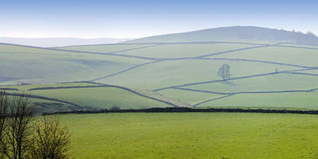 A view of the English countryside in the Peak District National Park.