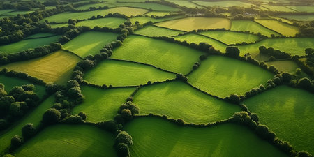 Aerial view of countryside in the Peak District National Park, generative ai