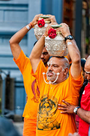 SINGAPORE, 2013 JANUARY 27 Devotees at the annual Thaipusam processionin Singapore Hindu festival to worship and to make offerings to the god Muruga 2013 JANUARY 27