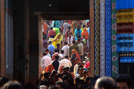 Crowd entering a Hindu temple