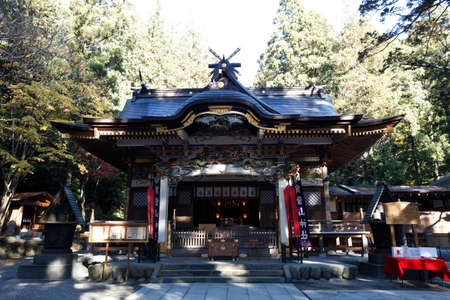 NIKKO, JAPAN - NOVEMBER 17, 2015: Nikko Futarasan shrine located between Tosho-gu shrine and Taiyu-in Mausoleum in the Shrines and Temples of Nikko - a UNESCO world heritage site