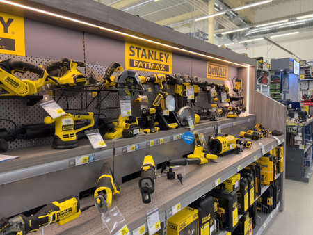 Minsk, Belarus - 12.13.2020. Department of construction electric tools of a various manufacturers.
