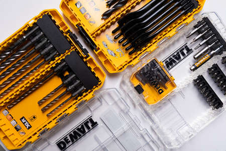 Kyiv, Ukraine - May 18, 2021: DEWALT logo on the tools