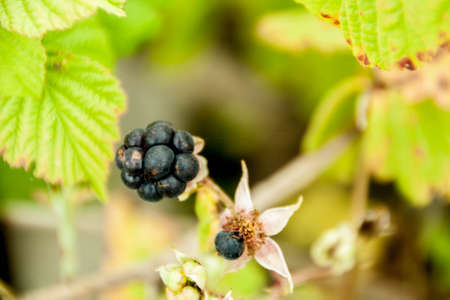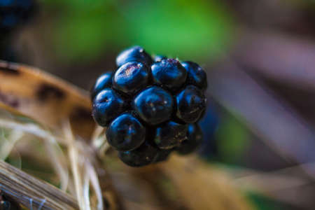 wild blackberries on twig in forest closeup
