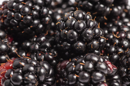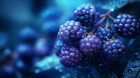 Close-Up Macro Image of Fresh Blackberries on Dark Background, Natural Organic Antioxidant Delight