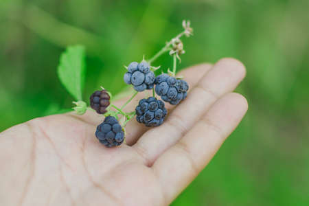 Wild BlackBerry in hand plant grows in the forest