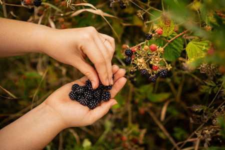 Picking blackberries from bush