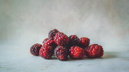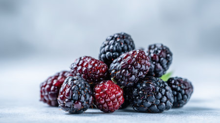 This image features a stunning arrangement of fresh blackberries and raspberries on a soft background, highlighting their vibrant colors and textures for an appealing presentation.
