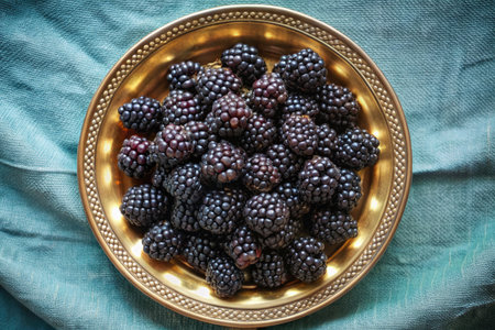 Beautiful arrangement of fresh blackberries on a bright blue background, perfect for healthy eating, food photography, and seasonal inspirations for snacks or desserts.