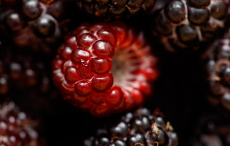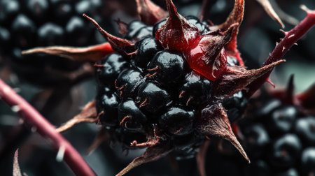 Stunning close-up image of a ripe black raspberry showcasing its glossy surface and intricate texture. Perfect for food enthusiasts and health-related content.