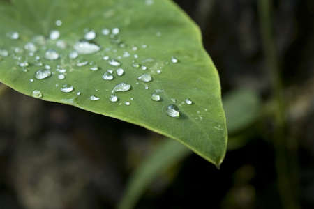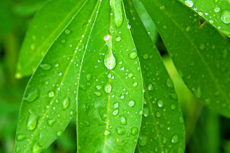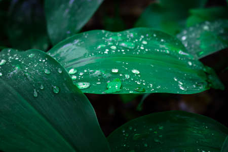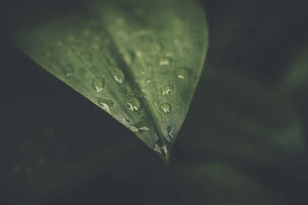 Rain water on green leaf macro.Beautiful drops and leaf texture in nature.Natural background in rainy season.