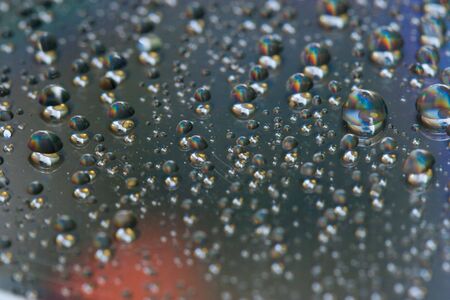 Water droplets on CD, abstraction. Water on compact disc surface.
