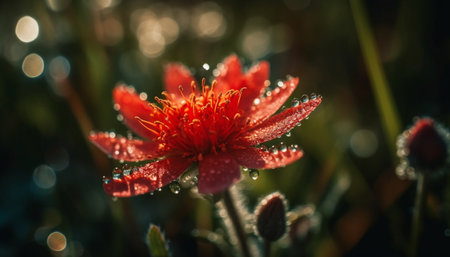 Vibrant wildflower meadow, dew drops on purple and yellow petals generated by artificial intelligence