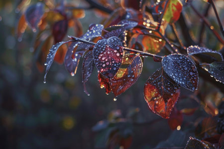 Stunning close-up of vibrant leaves adorned with dewdrops, showcasing the beauty of nature. This image captures the freshness and tranquility of a forest landscape.