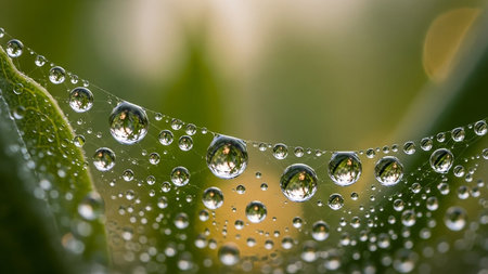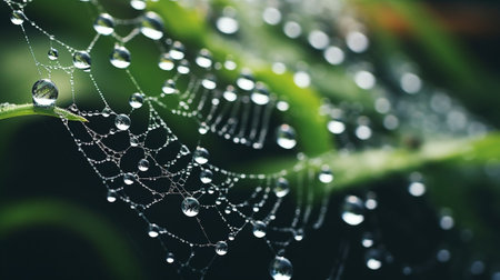 geometric patterns in a spider web with dewdrops, created with generative ai