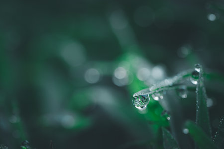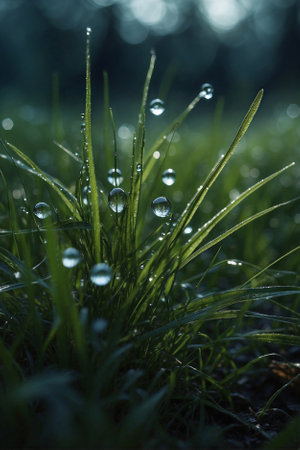 This image beautifully showcases fresh dew drops clinging to green grass, illustrating the delicate balance of nature and highlighting conservation efforts through its serene beauty.
