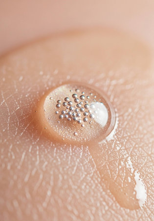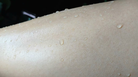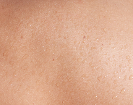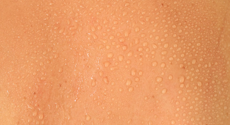 A closeup shot of details on sunburnt human skin with dripping sweat