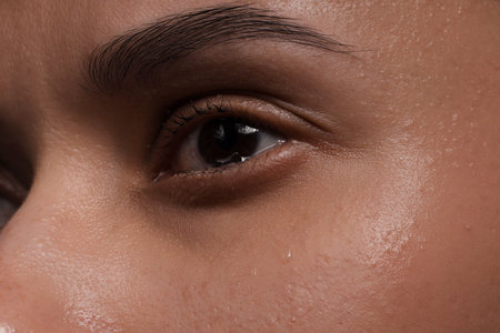 Detailed Macro of Woman s Dewy Skin and Calm Face Post Fitness Session