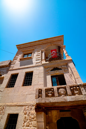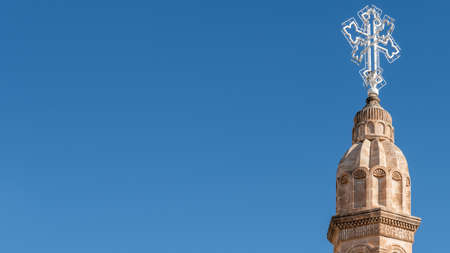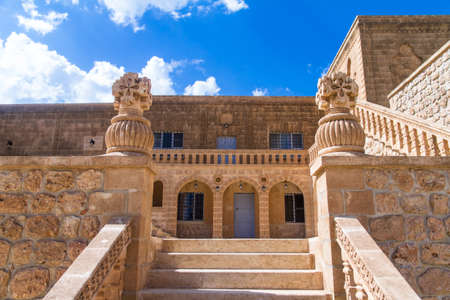 Midyat, Mardin, Turkey - January 2020: Architectural details of Mor Gabriel Deyrulumur Monastry. It is the oldest surviving Syriac Orthodox monastery in the world. Suitable for copy space