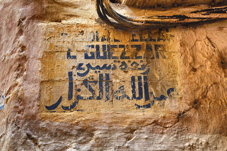MEKNES, MOROCCO - JUNE 01, 2017: Street information plaque in Meknes medina. Meknes is one of the four Imperial cities of Morocco and the sixth largest city by population in the kingdom.