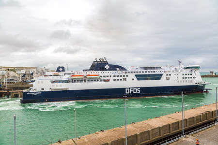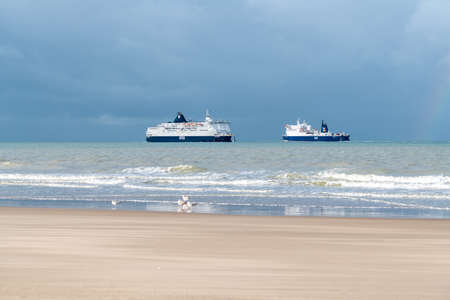 CALAIS, FRANCE - DECEMBER 19 : Ferryboat in front of Calais, FRANCE, sailing between Dover and Calais each day., December 19, 2018
