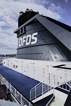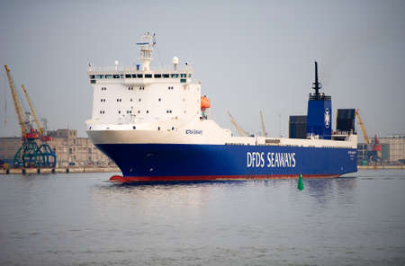 Klaipeda, Lithuania- July 14, 2015: DFDS Seaways freight ferry in the port of Klaipeda. Lithuania