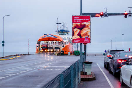 Virtsu, Läänemaa/Estonia-06JAN2020. Cars waiting in Virtsu harbor to aboard ferry called Piret to drive Kuivastu harbor in Muhumaa and then go to Saaremaa.