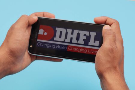 Maski India, 23 August,2019 : Hands holding mobile with DHFL Bank website Logo loading on mobile