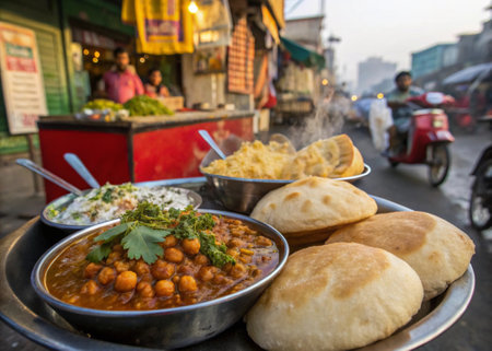 Chickpea curry with naan bread on the street