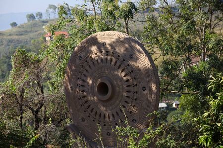 A beautiful carving is the wheel of law which symbolize Buddhism.