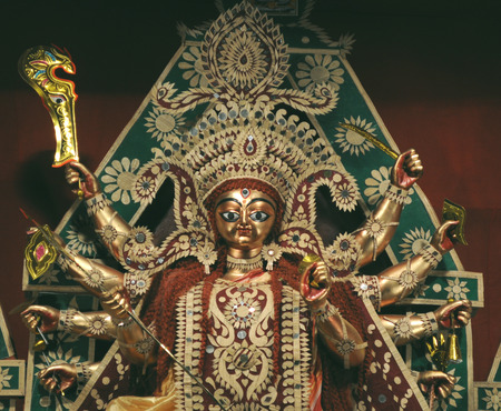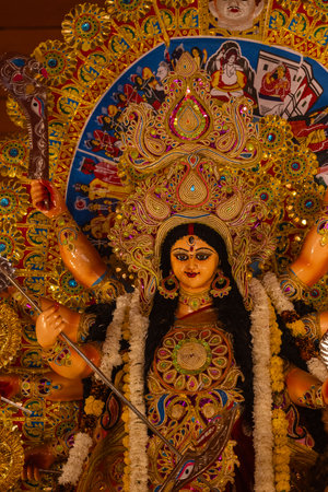 An idol of Goddess Durga decorated in Pandal. Durga Puja is biggest religious festival of Hinduism and for bengalis and is now celebrated worldwide.