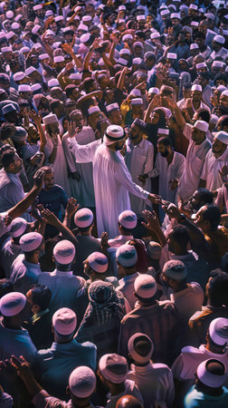 A Moment of Prayer Amidst the Crowd in a Middle Eastern Marketplace