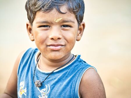 PUDUCHERRY, INDIA - DECEMBER Circa, 2018. Unidentified cute asian Indian kid with happy and funny face expression