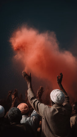 Traditional and religious Holi Festival, Color battle at the holi festival, colorful background, People celebrate fertility of spring and enjoy the colorful festival. High quality