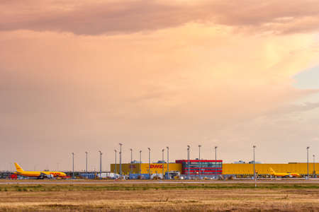 Leipzig, Germany - August 18, 2020: DHL Hub at Leipzig Halle LEJ Airport in Germany.