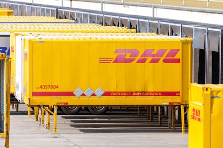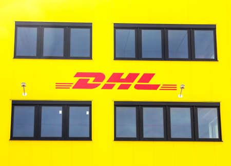 NUREMBERG / GERMANY - AUGUST 4, 2019: Freight logisitc center from international courier, parcel, and express mail company DHL in Nuremberg.