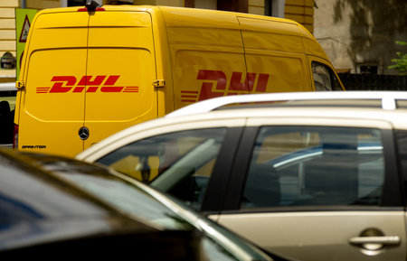 MOSCOW, RUSSIA - CIRCA SEPTEMBER, 2018: DHL vans seen parked at Moscow downtown in the daytime.