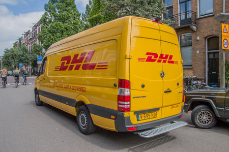 Amsterdam,netherlands-july 21, 2015: DHL side of a car,dhl is especially active as a courier company for the delivery of parcels and letters