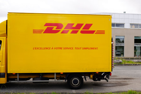 ST LOUIS - France - 5 May 2017 - DHL delivery truck parked on the street