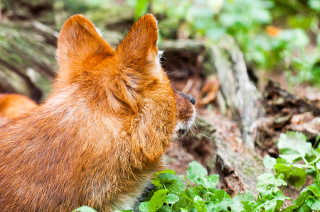 Indian wild dog or dhole (Cuon alpinus) seen in Wayanad Jungle, Kerala, India