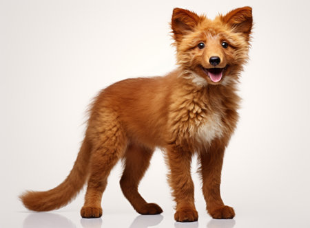 Cute puppy looking at camera with fluffy fur and whiskers generated by artificial intelligence