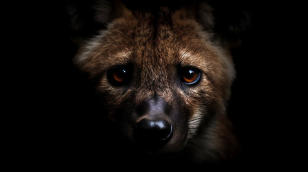 An AI generated illustration of a close-up portrait of a hyena against a dark background