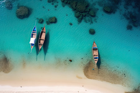 Generative AI : Aerial view of boats moored in the bay of Koh Rok Yai Beach island in Thailand