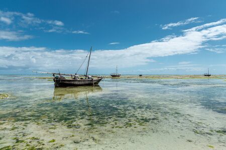Traditional fishing boats on the beach of Zanzibar, Tanzania