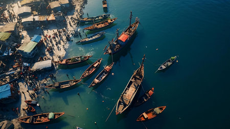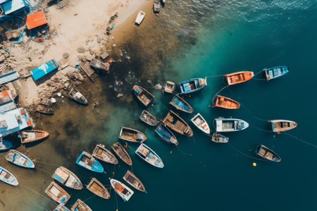 Generative AI : Aerial view of eight fishing boats in Hout Bay Cape Town