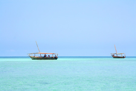 Dhow, a locally made vessel, floats on the sea of Zanzibar