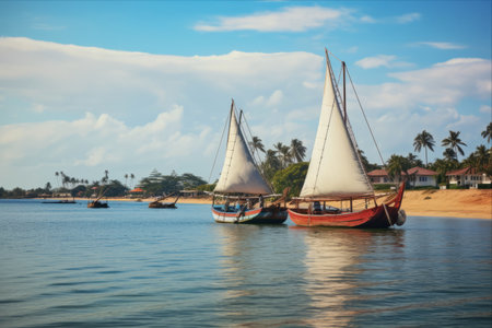 A Captivating Scene: Serene Traditional Catamarans Grace Negombo Lagoon's Shore in Sri Lanka