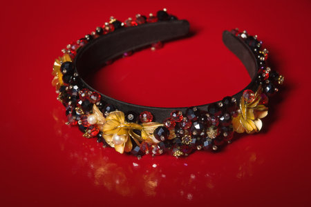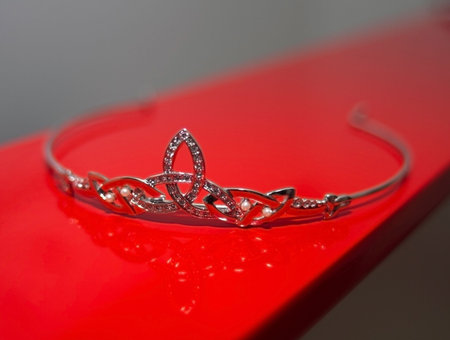 Closeup on Traditional Silver Wedding Tiara on Red Background